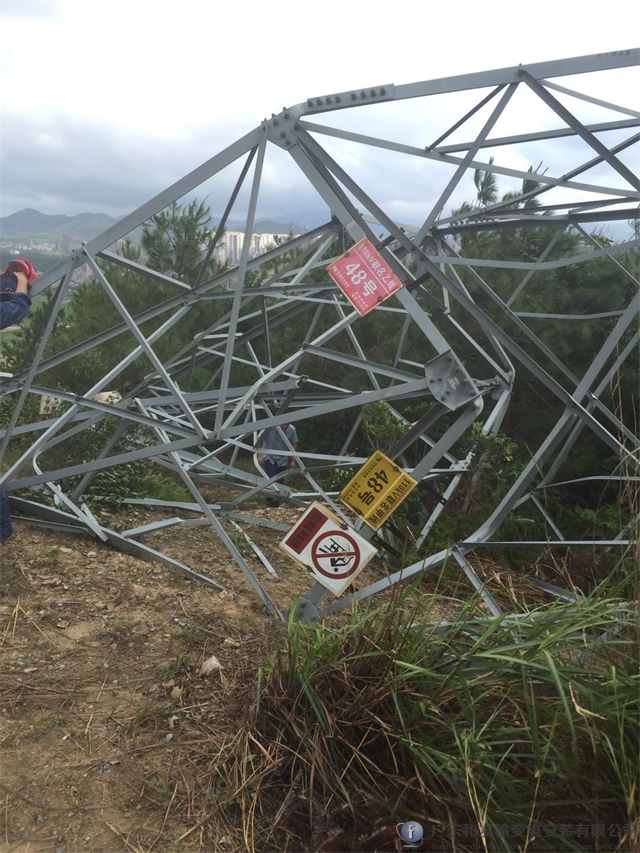 據(jù)惠州相關(guān)人員說(shuō),在“山竹”登陸期間惠州當(dāng)?shù)氐淖罡唢L(fēng)速為16級(jí);110kV聯(lián)名甲乙線(xiàn)N45-N49耐張段長(zhǎng)度為1493米,因N48塔發(fā)生倒塔,N47有輕微傾斜現(xiàn)象,同時(shí)地理環(huán)境較為惡劣,地處山上,通訊信號(hào)和交通條件極差,大型機(jī)械無(wú)法到達(dá),面臨重重的困難和阻礙,和發(fā)公司董事長(zhǎng)親自坐鎮(zhèn)現(xiàn)場(chǎng)指揮搶修工作,和發(fā)共投入接近百人的搶修隊(duì)伍,為這條承擔(dān)著惠州重要用途的高壓線(xiàn)路夜以繼日地連續(xù)奮戰(zhàn)。